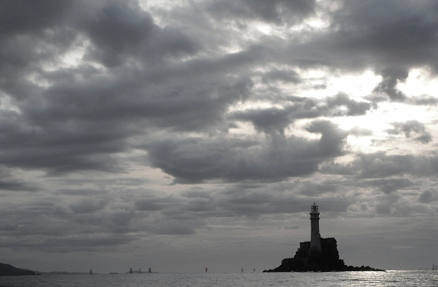 Rounding the Fastnet rock at about 0700 hrs after a very slow night without much wind. We’d come straight across the Irish Sea with a few other boats (ie taking the southern route) and most of the rest of the fleet had gone north. As the night turned into day we could pick out more and more sails coming over the horizon. Having been separated by miles and miles and miles of ocean for a couple of days, everyone was coming together to round the rock and then head back to Land’s End and then Plymouth.