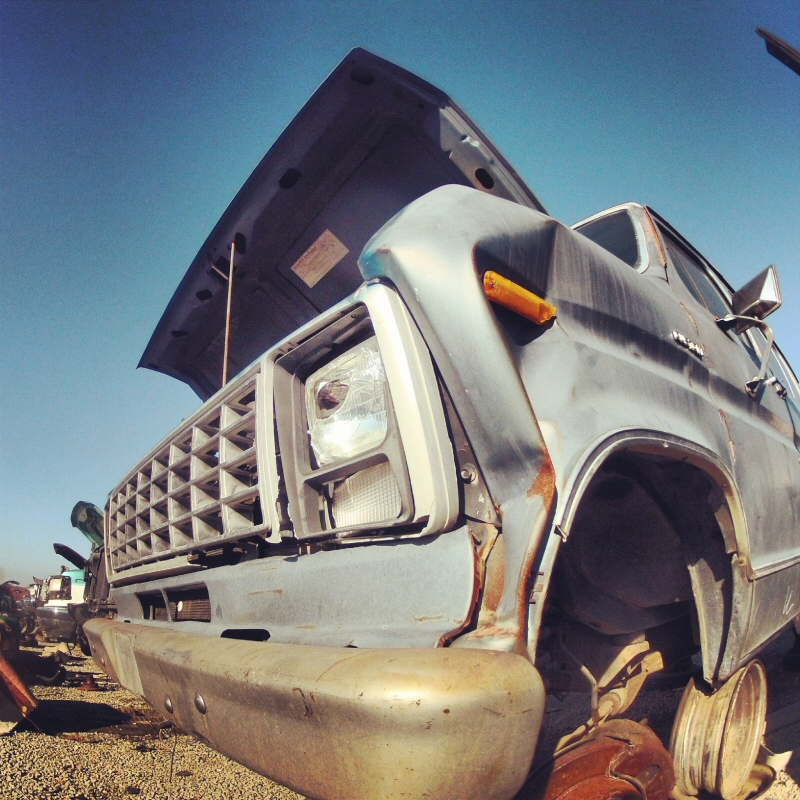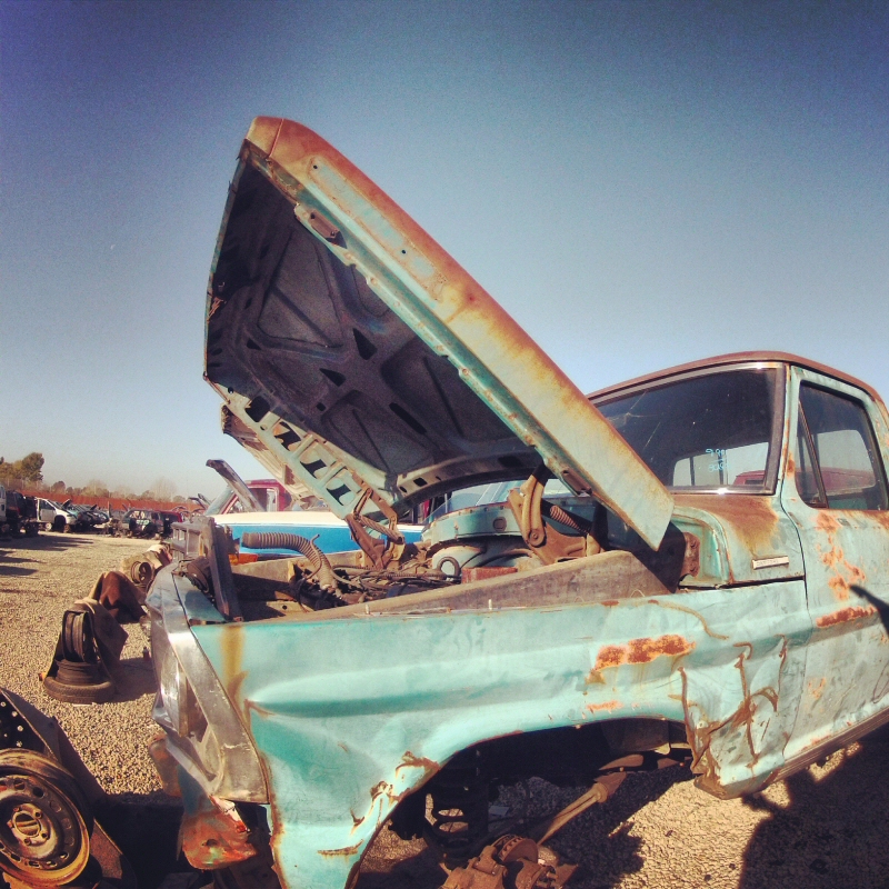 We went over to a place called “Pick n Pull” in Richmond today, to find some seatbelts for the rear bench seat in the van. A crazy place; hundreds of old wrecked cars and vans lined up, stood on upturned tyre-less wheels, awaiting scavengers like us to come along and tear off any good looking parts, like vultures on a kill.