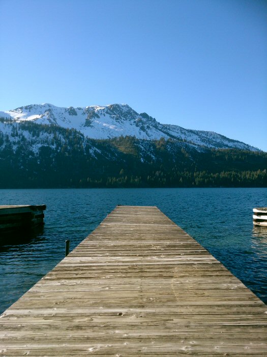 Sunday was a day off the hill, spent checking out the east shore, south shore and a short walk up to Fallen Leaf Lake where we had a wonderful, peaceful snooze in the sun. The only thing you could hear was the gentle lapping of the lake and the wind in the fir trees. It looked like this place would be pretty busy in the summer, with docks and boats and wealthy folk hanging out in their lake-side mansions … but the road was closed and all the houses were boarded up. The only person we saw was a lone kayaker way out on the lake, towing his fishing line.