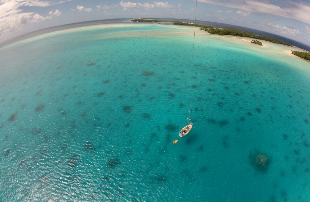 The half moon grows as it nears the horizon, an orange segment on its back, sinking towards the sea. The reflection on the water almost as bright and colourful as a sunset. The backs of waves all the way to the west catch the last flickers of colour – a cold golden – and then the moon is gone, leaving behind the limited, beautiful, monochromatic palette of a tropical night at sea. It’s become a little darker, but not much – now the milky way splashes over the top of the sky, the southern cross at one end and some bright planet at the other. The light at the top of the mast – our own little star – is scratching haphazard patterns in the blackness as the boat plunges and rolls underneath… the ocean using the boat as a pen to write secret messages in the sky above. Or is it just playing “join the dots” with the stars? I jiggle and jive, soaking it all in.