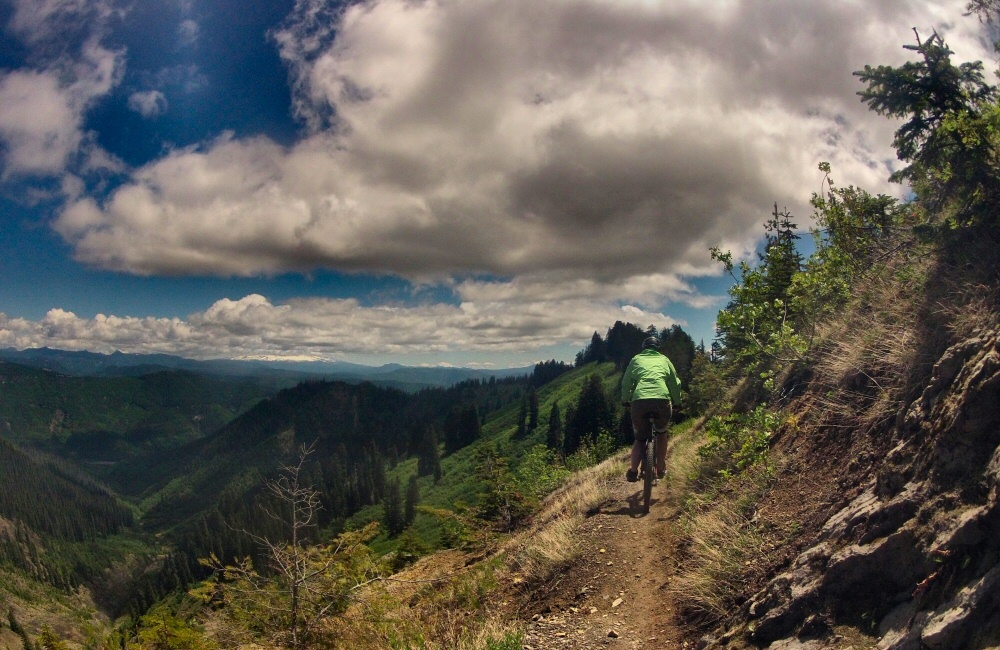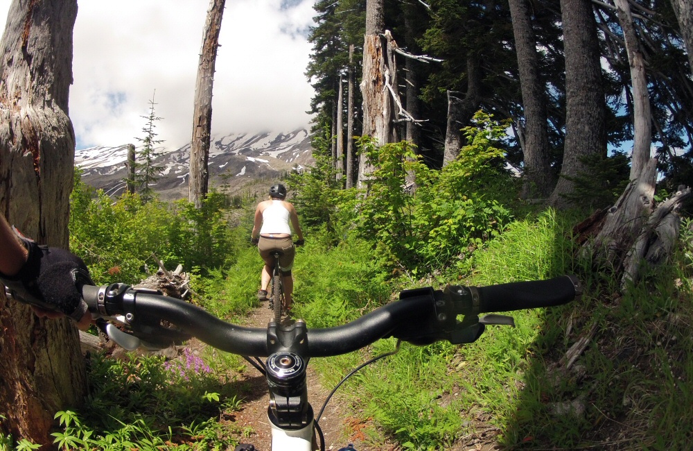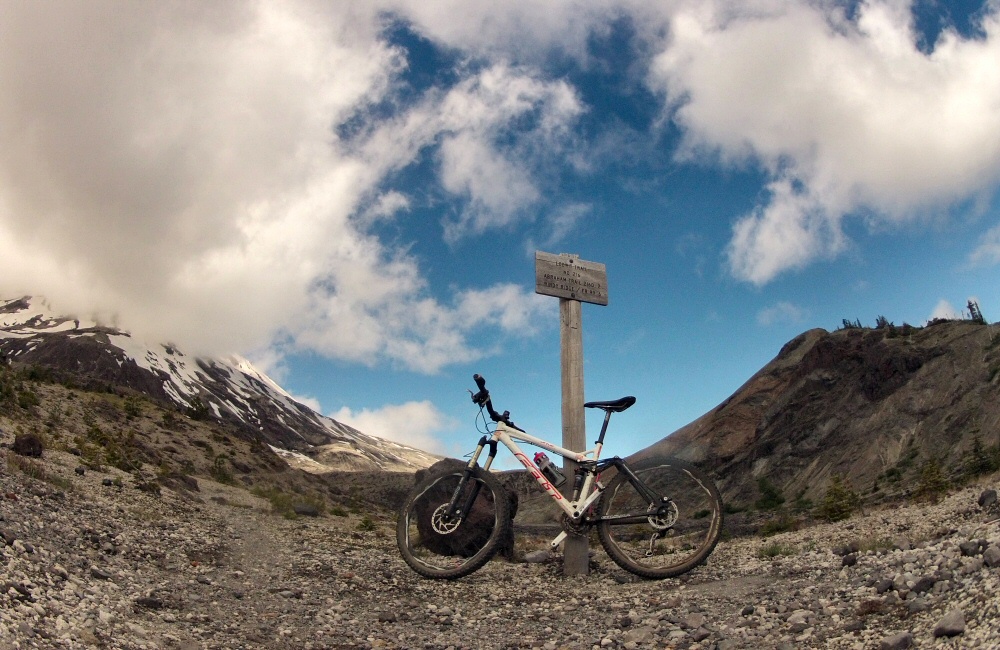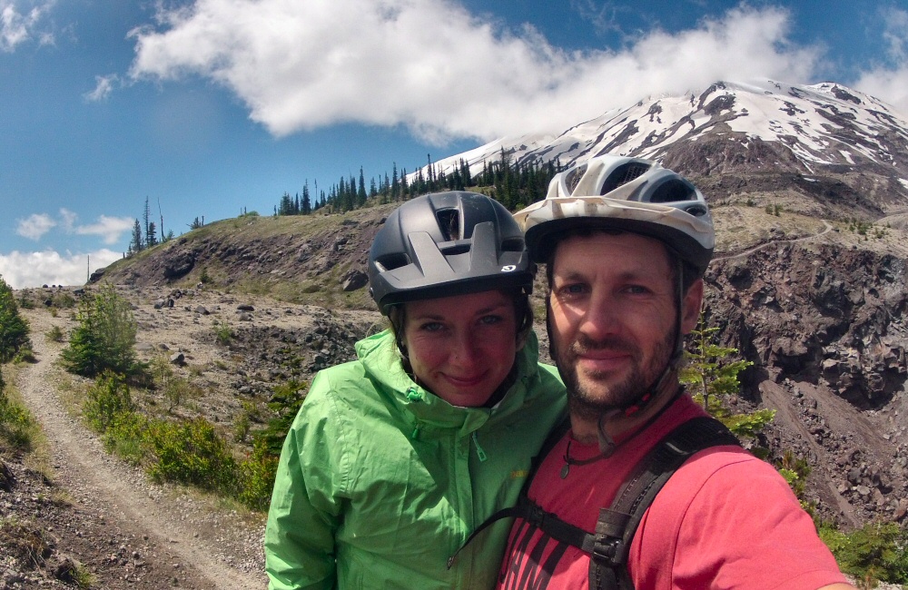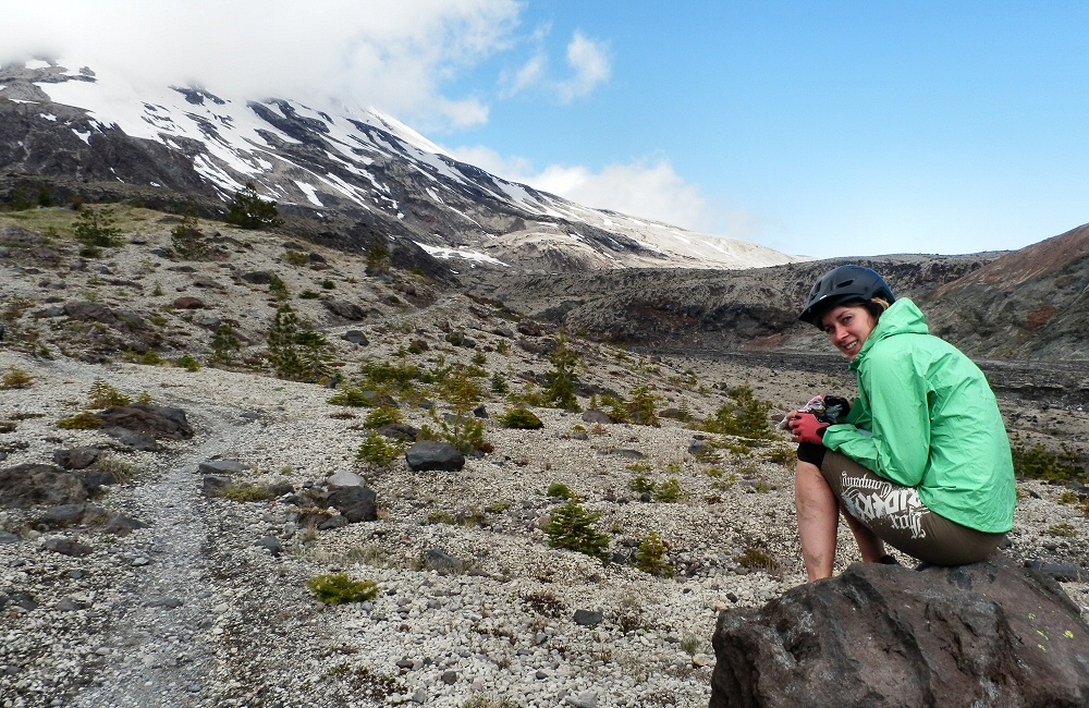 Had an awesome ride up Mount St Helens today. Rode up through fir trees by the side of a huge boulder and gravel-strewn valley for a while, then cut up onto a ridge on quiet singletrack. After an hour or so, we came out above the tree line at the top of the trail. Rose hung out here while I carried on up onto the Plains of Abraham; desolate volcanic flat lands covered in rocks of all types and sizes. Black lava, grey pumice and everything in between. Then back down through the woods to the van for a late morning coffee. Great to be mountain biking on a mountain, on remote trails. We saw one other couple with bikes, and another couple walking. Otherwise, it was an empty mountain.