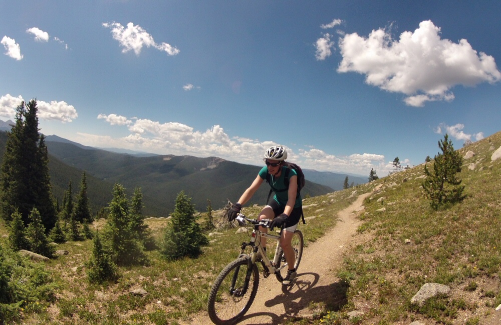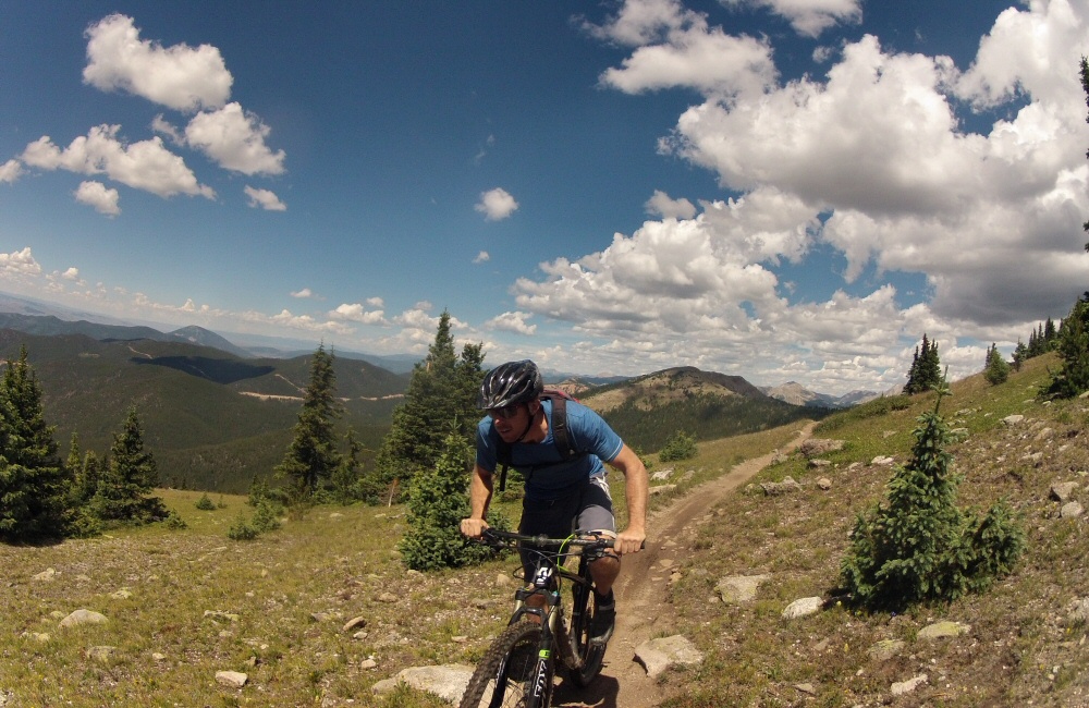 Rode another of Colorado’s top ten trails this morning – the start of the Monarch Crest trail, and then breaking off left down Fosse Creek. Rose wasn’t riding, so she took the van round to pick us up at the bottom, which meant a short bit of climbing for us – with stunning views – and then 9 miles of downhill. Probably the best ride I have ever had in my life. Real mountains, dry, dusty trail, incredible scenery, fast technical downhill that just went on and on and on. Two more pinch punctures – I’m getting good at quick tube changes!