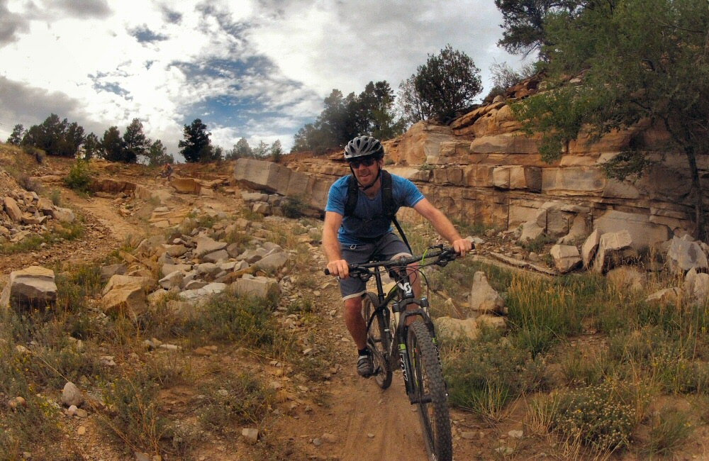 I got up early and wandered down to the lake overlook. Not much of a lake really. The water had clearly been much, much higher when the local maps were made, but now there was not much more than a pond sitting in the bottom of the valley. Back into Colorado, where we stopped at Durango, another mountain bike hub. First port of call was a place called Steaming Beans for coffee and internet catch-up, and to make plans for the next few days with the maps and guide books out. Jon and I tackled another of Colorado’s Top Ten Rides – a double black diamond rated route up onto a ridge and down a super rocky, technical descent – more like trials riding than mountain biking, with a huge vertical drop into the valley below if you get it wrong. So not many pics.