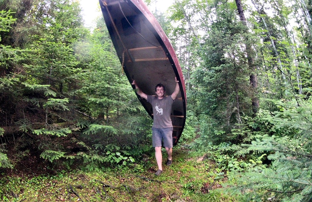 On day two we continued south over Cirrus Lake to the longest portage of the trip, over the hill to Kaskokwog Lake. Carrying boats and kit through the wet foliage sets the swarms of biting bugs in flight, and if you’ve got both hands full you just have to grit your teeth and watch them suck your blood out as you charge on as fast as possible to the other side. Once in Kaskokwog Lake, we drifted slowly downwind for a couple of hours, fishing and watching the world go by. We all caught pike, which went straight back in the water – not nice to eat.