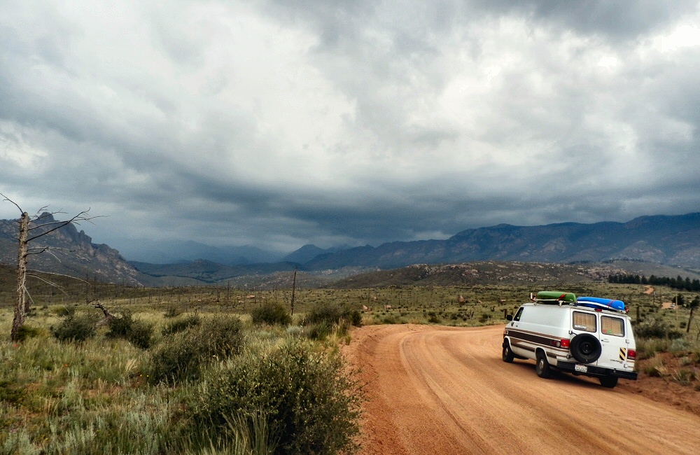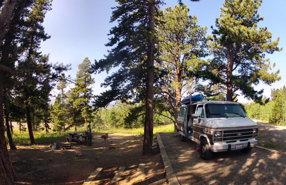 We cut through the trailing corner of the storm, and got our fair share of wind and rain before we popped out the other side for the final run into Denver. Driving straight through the city, we headed up into the Golden Gate Canyon State Park to look for a campsite. The site in the State Park was fully booked, but the ranger directed us down the road a short way to a National Forest site which still had a few places free. I’m sensing the outdoorsy and adventure vibe here – much like Montana and Wyoming – lots of cars and pickups with high-end mountain bikes on the back. Not so many kayaks or boats though. I think it’s going to be a bit harder to find free camp sites, so we may have to plan a bit more and book ahead.