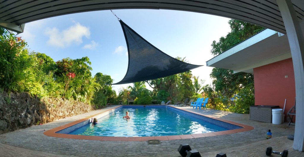 We continued around the south – the Coral Coast – to Sigatoka, staying at a small budget resort for the night. It happened to be “entertainment night”, with dancers and fire poi. An interesting change from boat travel, seeing how “normal” tourists see Fiji. We all joined in and got up on stage for some dancing. There was a pool at the resort which Tilly loved, and she made friends with another girl who was visiting from Australia. We also met a local family enjoying a weekend away from home; he worked on a dive boat and she was a masseuse for a resort.