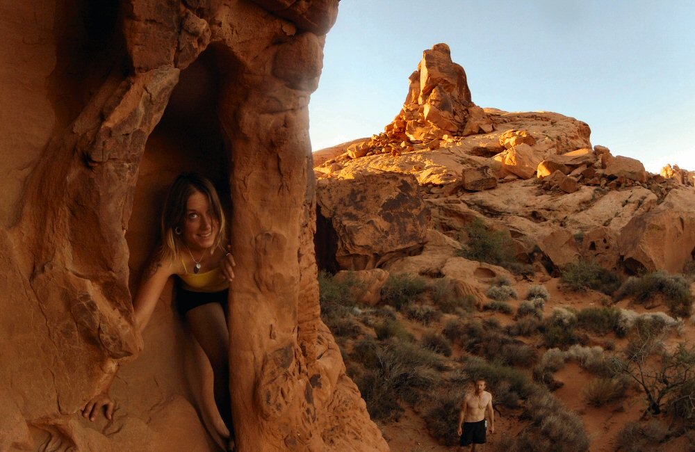 Stowaway! In the night, something ran over Rose’s arm and woke her up. A cheeky kangaroo rat had made its way aboard somehow, and was hunting among our packets of food. Throughout the hot night there was a shuffling and scuffling around in the bottom of the van, and by the morning it was gone. We were up early to catch the sun rise over the stunning red landscape, and explore before the sun got too hot. We made a trip across the park to see Elephant Rock which had been on Rose’s “crazy American scenery” list.