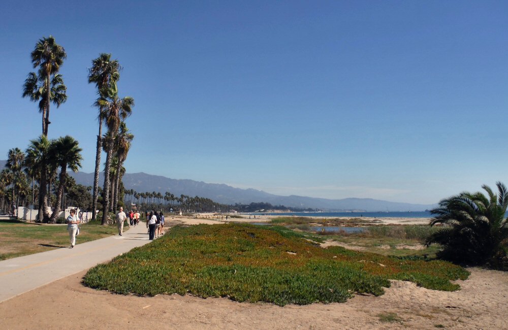 We spent a couple of days in Marina Del Ray, Los Angeles – a day working and a day exploring on rented bikes, along Venice Beach to Santa Monica. Almost every dock we’ve stayed at has had a team of sea lion hanging out nearby. Noisy, disgusting, smelly beasts. They bark almost all night, release vile smells, and make a mess everywhere. On the guest docks here, they were only a few yards away, a cacophony of shouting, snoring, burping and wheezing. I’d be happy never to see another sea lion again. Also at the dock was a pretty little green boat we’ve seen a few times since Morro Bay. Clearly a boat going places. On board are a couple of buddies sailing south to Mexico, one then flies to Aspen in Colorado for a winter season, while the other continues sailing around the world. No doubt we’ll bump into each other again further south.