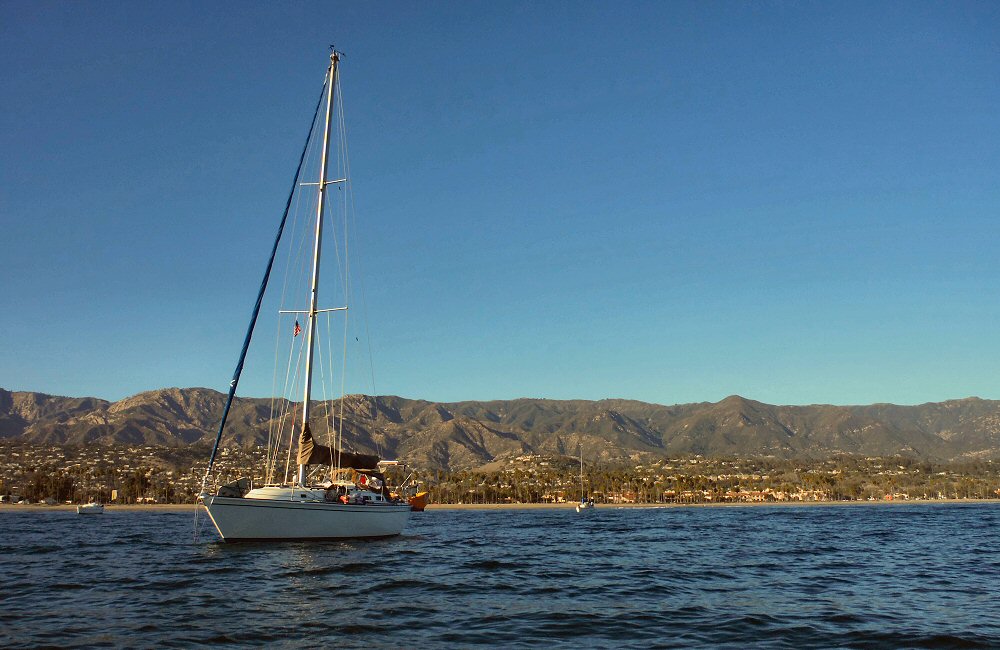 Under Santa Barbara pierTrying to get back aboard a rolly Rafiki
