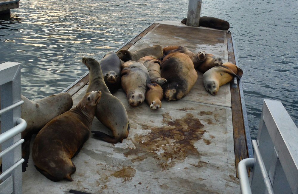 Arriving at the guest dock, Rose goes forwards to kick the fenders off the side, just like we do every time we come into port. This time the splash was a bit louder than normal. Fender overboard! I spun the boat round and we rescued our lost man without trouble, then docked the boat in a visitors slip. Sea lions on the docks AGAIN. Shouting noisily, making a ruckus. I think we’ll still sleep pretty well.