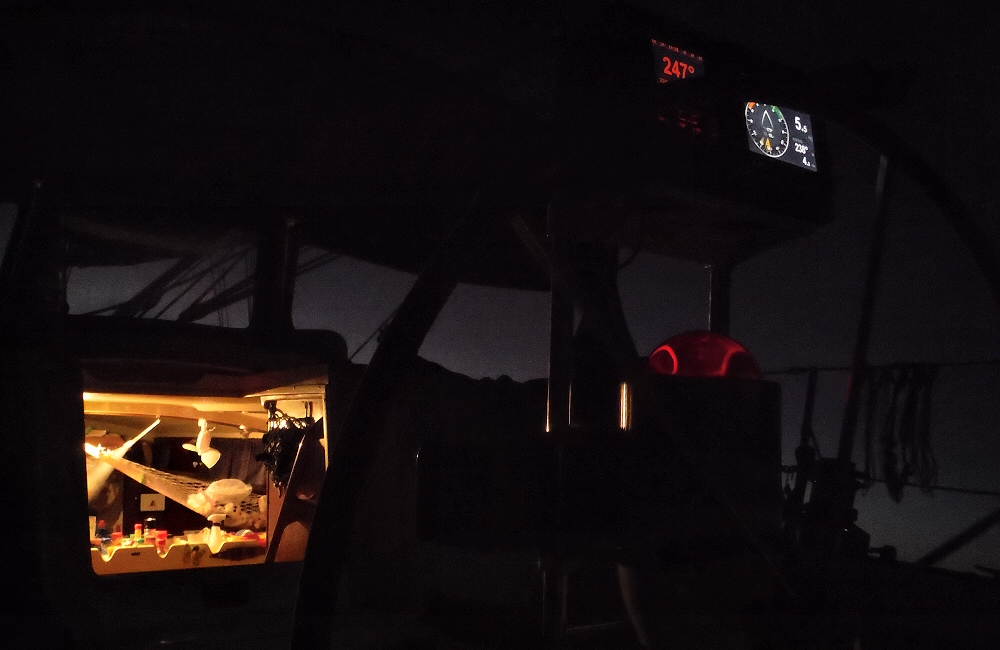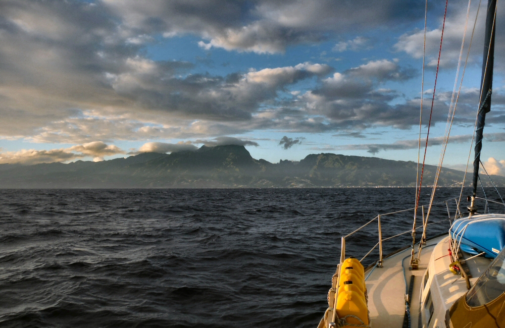 Evening was spent on “Max” – a French couple’s 54-foot Amele, eating more of the fish, drinking wine, and trying to keep up with the fast French conversation. They’d arrived in the afternoon while we were ashore. A big boat – plenty of freezers on board – which meant a wonderful freshly baked tarte-au-poivres for dessert! Hervé and Caroline are from Brittany, with a great sense of humour, I tried to give as good as I got as a Brit on the receiving end of the jokes. Lionel is a lean, blonde, curly haired sea vagabond, seeming much younger than his 53 years with a hip-hop baseball cap, board shorts and tired tee shirt. Very animated, enthusiastic and much as I imagine his precursors Bernard Moitessier and Jean Gau to have been like back in the sixties. Hervé – a robust, ruddy, short haired Bréton with an infectious “joie de vivre” and a mischievous look in his eye. His wife Caroline – smiling and open, and of course impeccably presented and stylishly dressed in the way of French women the world over. The two of them were clearly very comfortable on board together, seeming much more of an even team of two than many other couples I’ve met at sea. I like the French. They make me chuckle – almost every Frenchman fits the stereotype in some way.